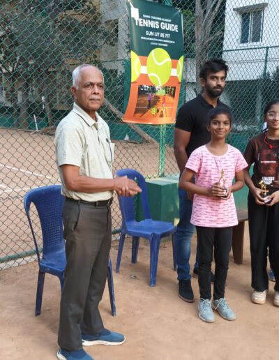 Apart from K V Bhat and Shamathmika at the helm, Tennis Guide has three more experienced assistant coaches by name Mahendra, Rakesh. Each of them being enthusiastic and able in their own way who complete the coaches team.