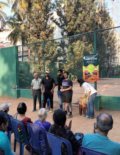 Tennis Guide is a tennis academy by Sri K V Bhat, with Shamathmika V, a former national ranking tennis player and AITA certified coach. The academy focuses on promoting fitness and fun through tennis. Their approach includes personalized coaching to develop each player’s unique strengths and improve both their game and fitness. They offer various batches, including regular, senior/adult, and summer camps, with sessions scheduled throughout the week.
